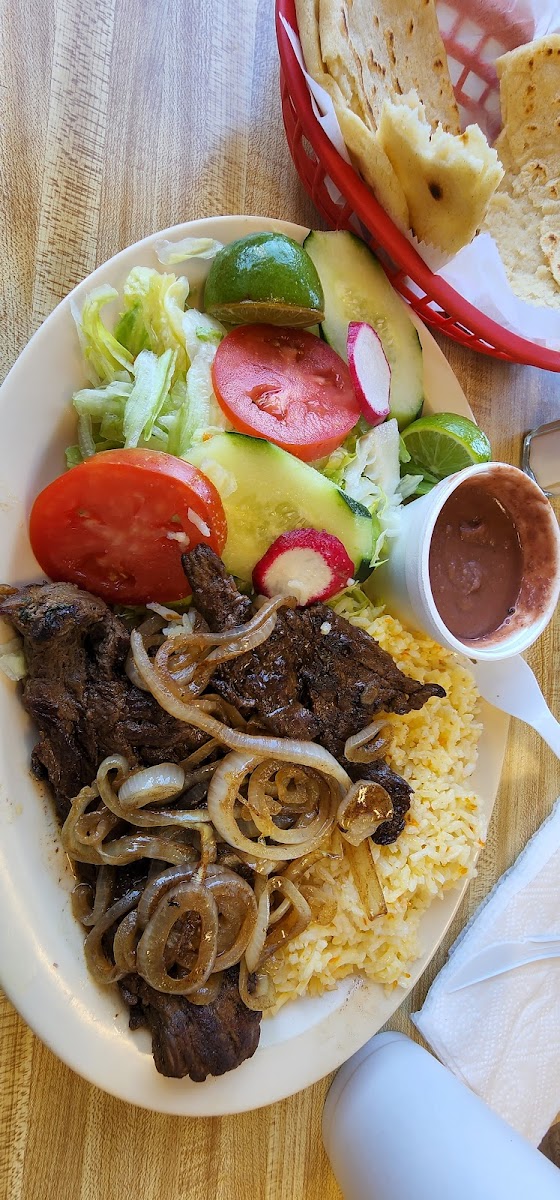 Another dish that should not be missed is the Bistec Encebollado. This savory steak, topped with caramelized onions, is grilled to perfection and served with the perfect sides of rice, beans, and fresh salsa. If you're a fan of seafood, you’ll love the Mojarra Frita, a crispy fried fish that’s simply mouthwatering. The Carne Asada, with its grilled, flavorful beef, is another fan favorite, and pairs beautifully with the restaurant's homemade tortillas.
